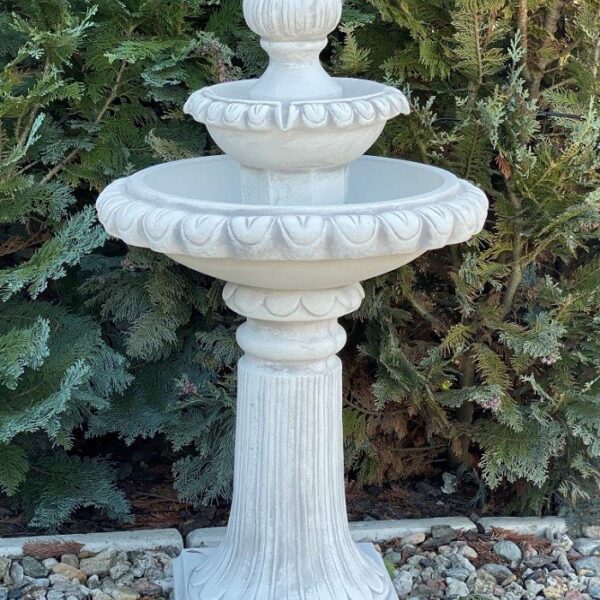 Betoonist purskkaev poisi ja koera skulptuuriga